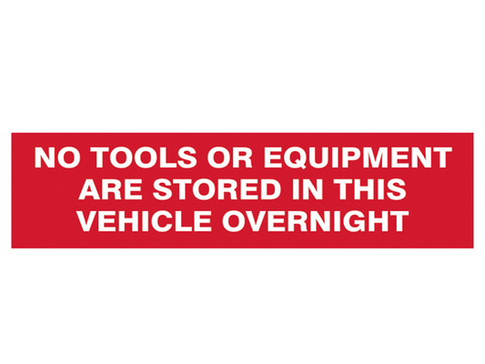 Scan SCA5256 No Tools Or Equipment Stored In This Vehicle Overnight - SAV/CLG 200 x 50mm |