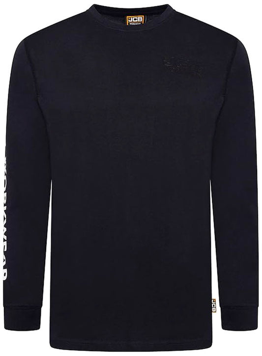 JCB WORKWEAR BANNER LONG SLEEVE T-SHIRT NAVY BLUE GREY | ALL SIZES