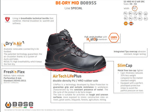 BASE B0895 Safety Boot Shoe Black Be-Dry Mid/Be Rock