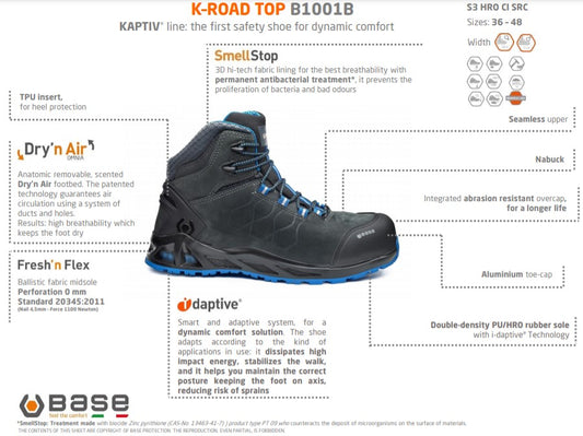 BASE B1001 Safety Boot Shoe Sz4 Grey/Blue K-Road Top
