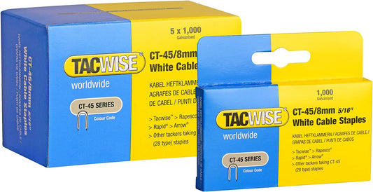 Tacwise 0980 Type CT-45 / 8mm Galvanised, White Cable Staples, Pack of 5,000