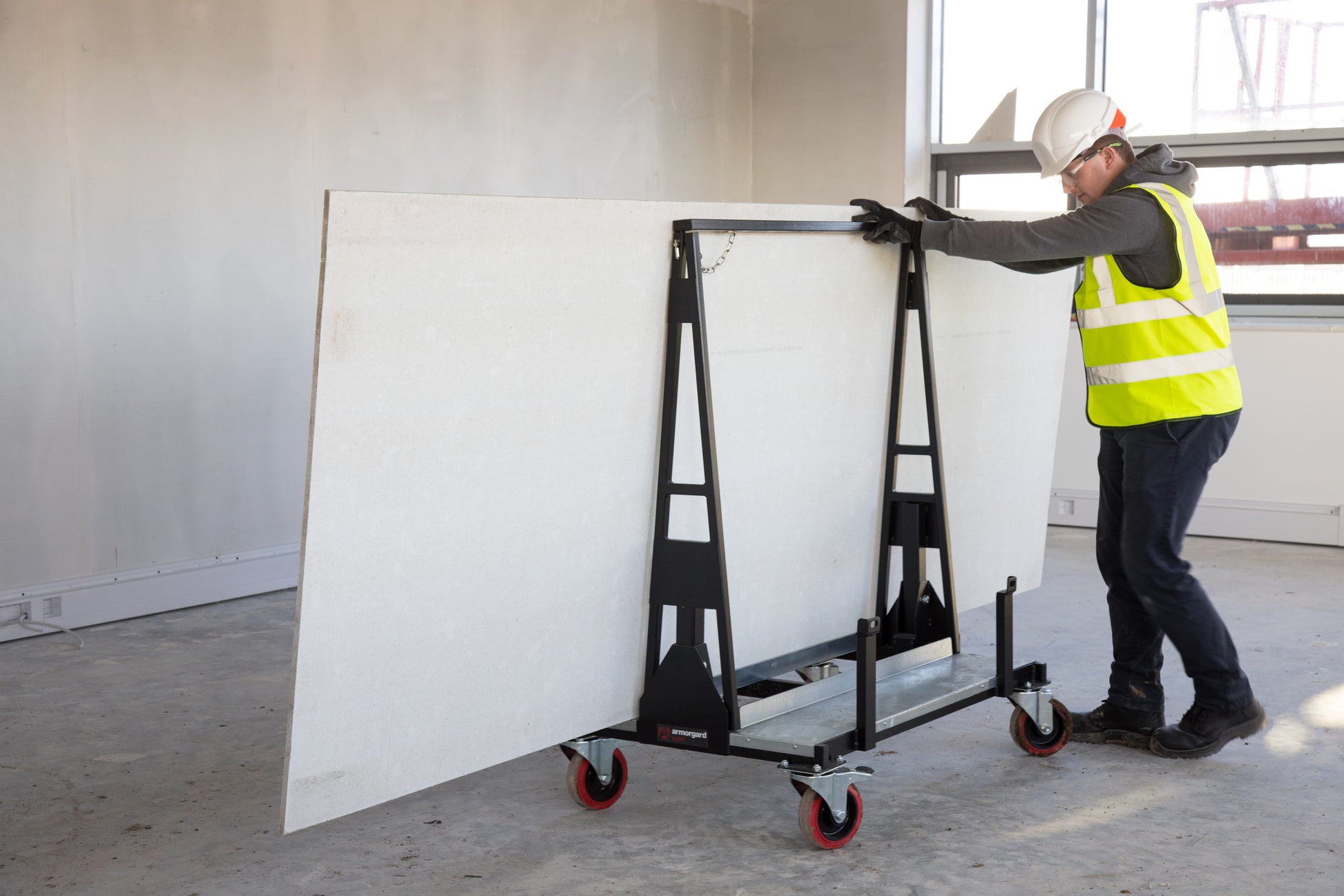 LoadAll, Save space, ease handling and protect your materials from damage using Armorgard LoadAll™. Whether in the yard, on the delivery truck or on site, transporting large sheets of board has never been easier. Specially designed for storing and transporting plasterboard and other large-sheet materials, LoadAll™ LA1000 is the only trolley of its kind on the UK market that can be folded down and stacked when not in use – and with no detachable parts to lose!