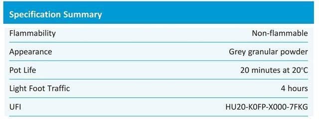 A protein‐free, latex modified, flexible, high performance cementitious floor levelling compound suitable for use at thicknesses from 3mm to 50mm.