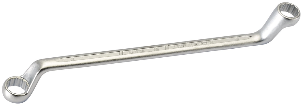 Professional Quality, long series manufactured from chrome vanadium steel hardened, tempered and chrome plated for corrosion protection. Ring ends are accurately broached with chamfered bi-hexagon profiles for easy nut location and are offset at 45°. Sold loose.