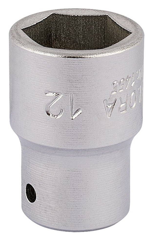 Professional Quality, socket manufactured from chrome vanadium steel hardened, tempered and chrome plated for corrosion protection. Chamfered end allows easy nut location and entry. Hole for driving accessory spring - loaded ball bearing.