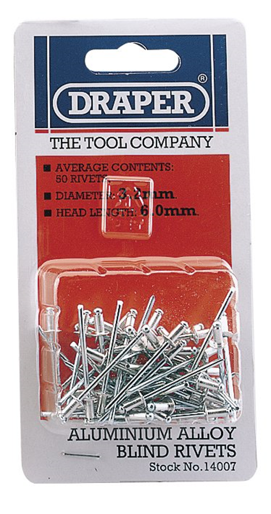 Aluminium rivets with steel mandrel. Average contents 50 rivets per card.