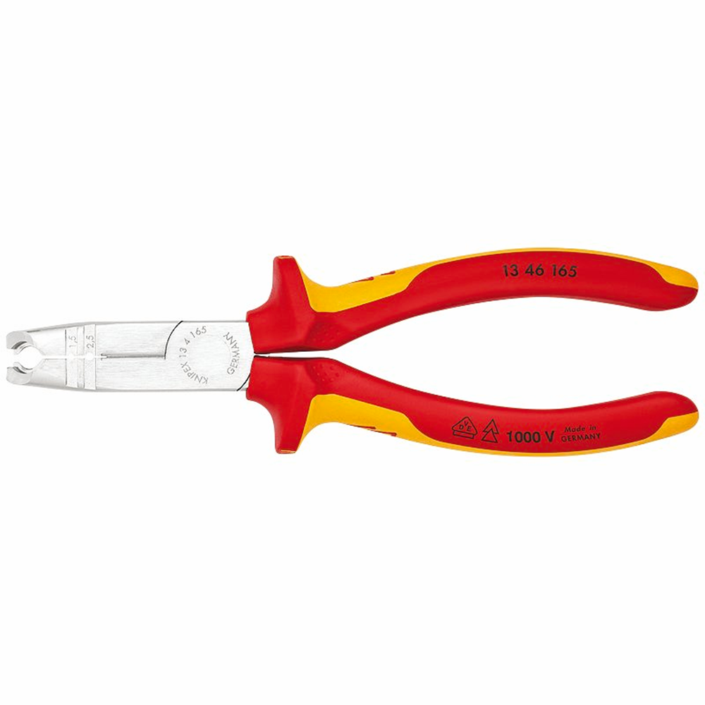 Professional Quality, tested to 10,000V and insulated to 1000V AC and 1500V DC for live line working. Thanks to its circular cutting edge they enable easier access into deep mounted junction boxes, easily stripping cables without damage. Universally useful, the precision 1.5 and 2.5 mm² wire stripping holes and diagonal cutters used for conductors, wires, small screws and nails. All cutting edges are additionally induction hardened for a longer life. Manufactured from oil - hardened chrome vanadium steel. Perfect for dismantling and stripping round sheathed and damp - proof installation cables.