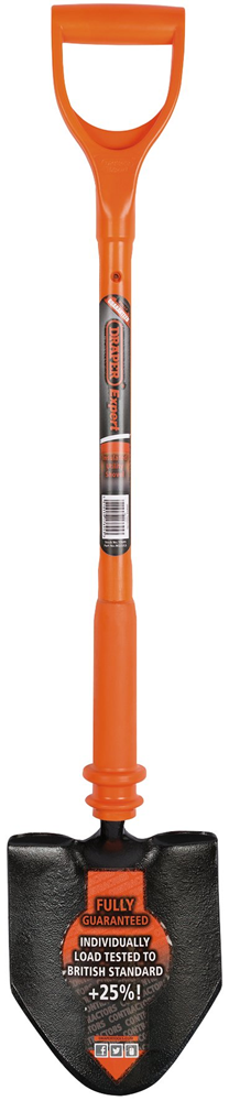 Expert Quality, fully insulated utility shovel designed for working on or near live cable and wires. Individually tested to 10,000V, guaranteeing safe working on 1,000V and complying to the BS 8020: 2011 standards. Manufactured with an epoxy fibreglass core and attached to a fully enclosed insulated shaft with hand slip guard. Each shovel is Supplied with a certificate of conformity, which correlates with a unique traceability number embossed on the shaft.