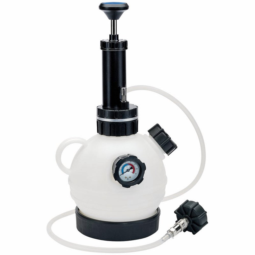 Expert Quality, pump action manual brake bleeder ideal for one person operation on vehicles unable to be bled using suction methods. Fitted with pressure gauge, release valve, spring loaded hose coupling and Supplied with 1m (approx) of flexible hose. 2L clean brake fluid capacity, ideal for busy workshop environments.