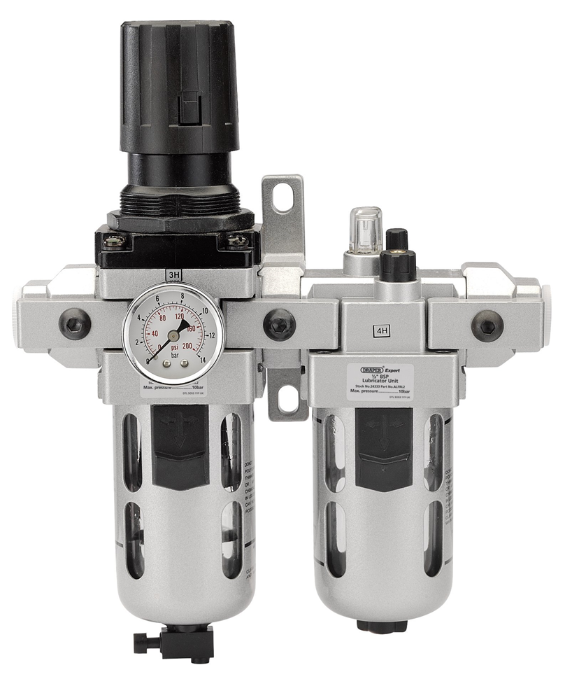 Expert Quality, designed to eliminate moisture and contaminates from the air flow and lubricate tools prior to use. Polycarbonate screw - on transparent bowl with aluminium housing. Fitted with 40 micron filter. Maximum inlet pressure 10bar/145psi. Supplied with wall mounting bracket.