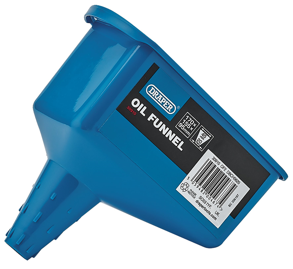 Shaped for square and rectangular oil bottles. Suitable for transferring liquids such as water, oil, petrol, diesel and antifreeze. Rigid spout which is tapered to improve compatibility for a wide range of applications. Moulded side handle grip which doubles as a hanging hole. Manufactured from durable polypropylene.