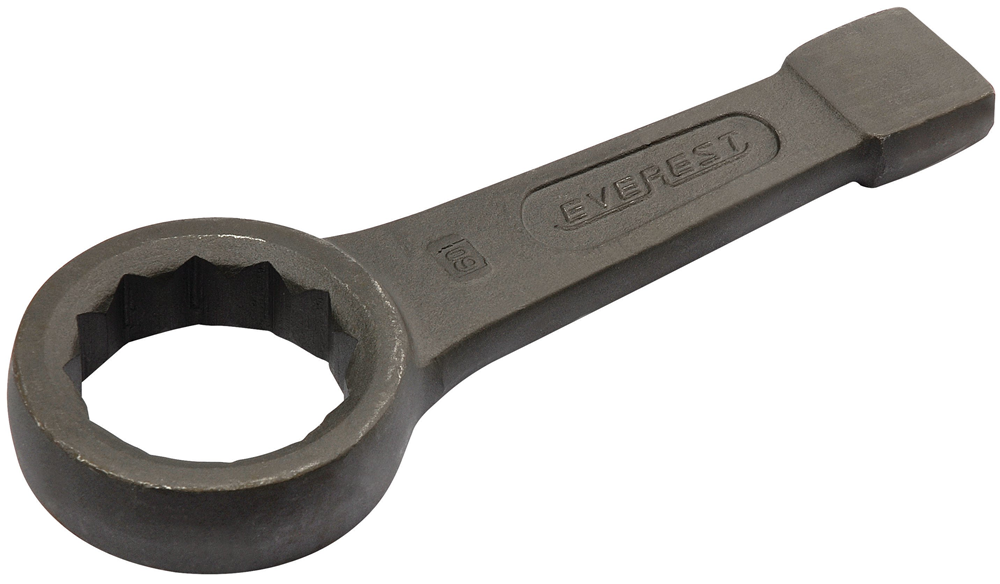 Flat pattern spanners with striking end. Forged from good quality carbon steel, hardened, tempered with black phosphate finish. Length +/ - 5mm.