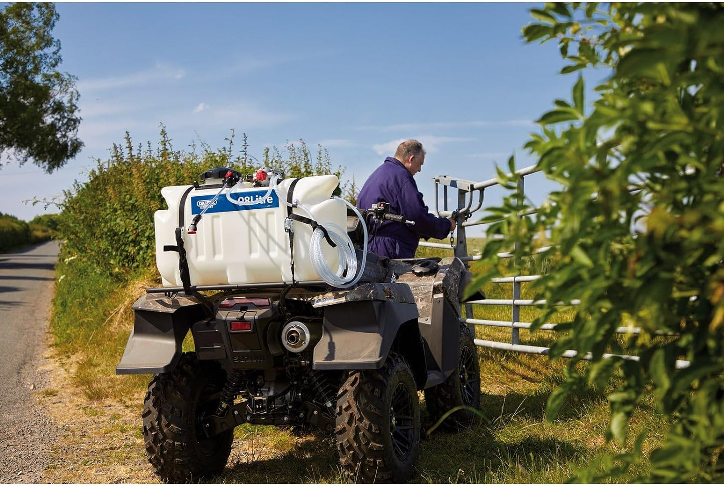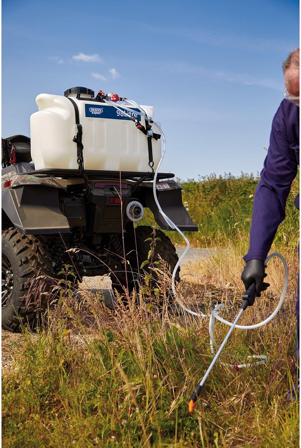 Expert Quality, mounts to any all terrain vehicle (ATV). Supplied with two lances: one attached to tank bracket for broadcast spraying and the second with a trigger for hand operation. Spray pump powered by 12V battery or connected via electric 12V motor on ATV. The pressure activated diaphragm pump produces a smooth flow from the tank. The tank is manufactured from special chemical resistant polymers for extra long life. Can be used for spraying fertilizer, weed killer, de - icer and ethylene glycol products. Supplied with straps for fixing to ATV and switch for remote operation.
