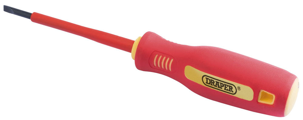 VDE approved fully insulated soft grip plain slot screwdrivers tested to 10kV, suitable for working on live circuits up to 1kV AC and 1.5kV DC. Chrome molybdenum steel blades hardened, tempered and chemically blacked.