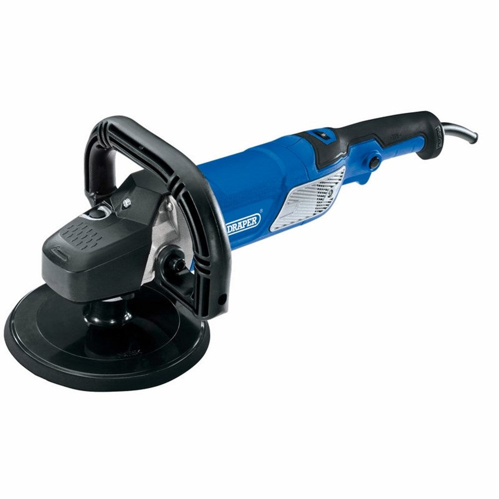 Features: Dual function sander - polisher, Constant electronics, Hook and loop base, Variable speed control, Supplied with a polishing bonnet, hook and loop backing pad, sanding sheet, adjustable D handle with additional side handle and 3M cable with BS plug