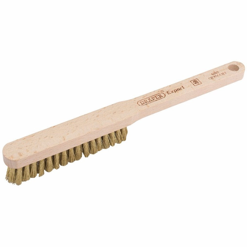 Expert Quality, dense brass fill wire brush, securely held in wooden stock.