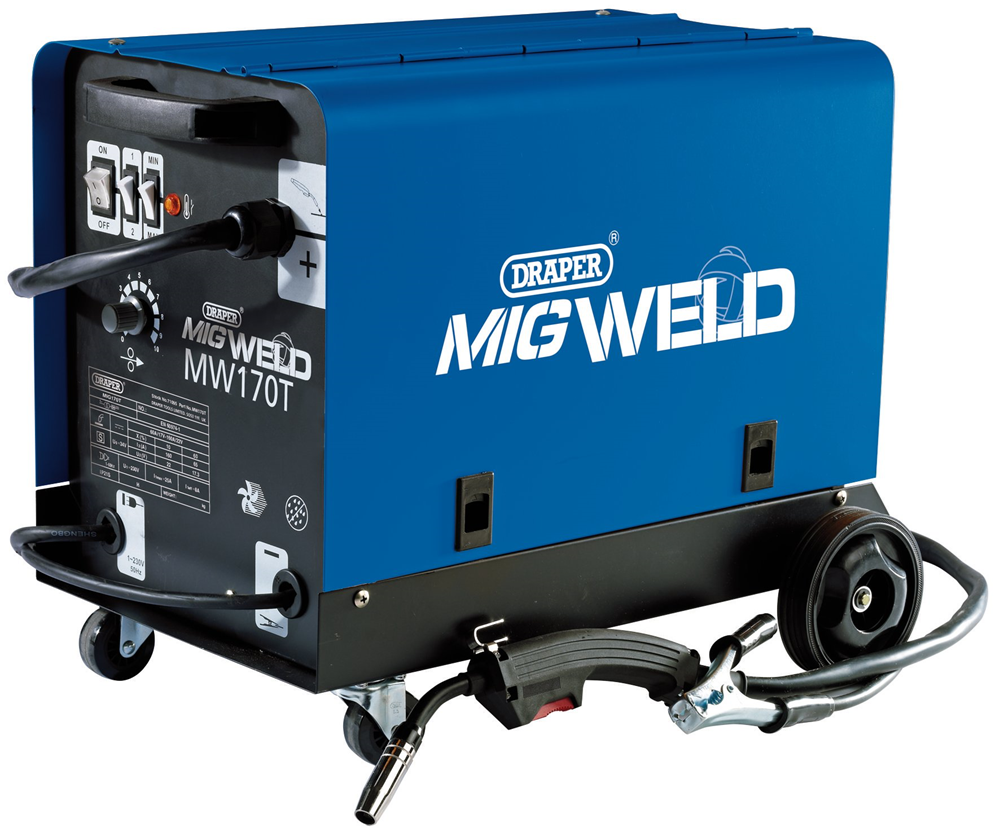 This compact multi-purpose gas/gasless MIG welder combines performance with ease of use. It features variable wire speed control. The thermal overload protection and internal cooling fan ensures the optimum weld. Portable, equipped with transport wheels. Supplied with accessory kit including electrode holder, earth clamp, MIG torch, chipping hammer/wire brush and face mask.