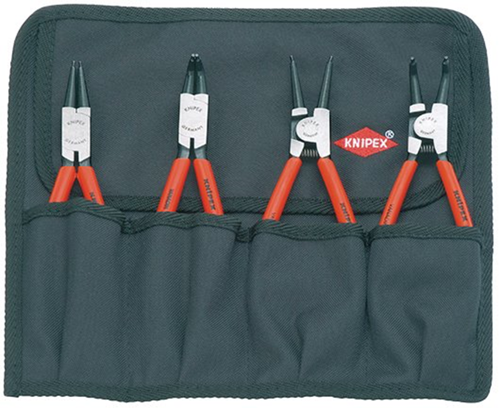 Professional Quality, comprising four commonly used circlip pliers. Supplied with in canvas roll bag.
