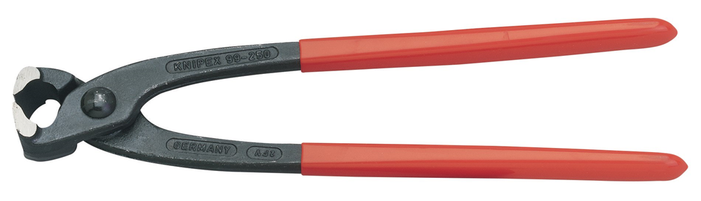 Professional Quality, manufactured from special tool steel, oil hardened and tempered with smoothly ground jaw faces. Specially for reinforcing wire. Will twist and cut binding wire in one easy operation. Plastic coated handles.