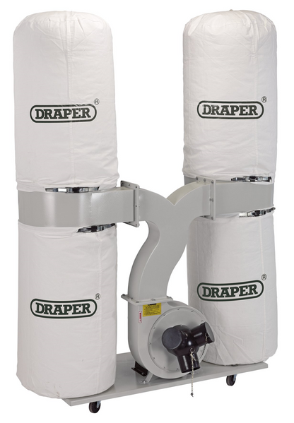 Featuring a powerful 2200W motor capable of extracting small and larger particles or fragments. Suitable for attachment to most static workshop machines including bandsaws, table saws, scroll saws, planers and sanders. Capable of extraction from three ports simultaneously. Manufactured with a no - volt switch and attached to a base trolley fitted with four swivel castors providing easy manoeuvrability. Supplied with 5 - micron canvas filter bags, transparent collection bags. Fitted with 2.0M (approx) of cable. (no plug).