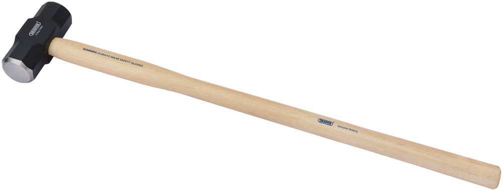 Polished face, high carbon steel solid forged head, that's correctly hardened and tempered with a lacquer coating for rust protection. Natural straight grained hickory shaft sanded and lacquered.