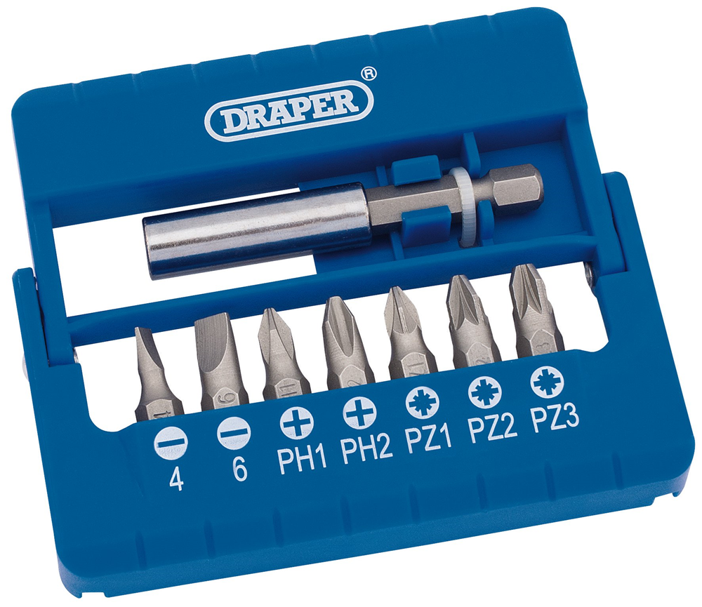 25mm 1/4" bits manufactured from chrome vanadium steel, hardened and tempered with a shot blast finish. Supplied in a convenient storage case which opens up for easy access to the bits. Magnetic bit holder made from zinc alloy steel with chrome plated finish.