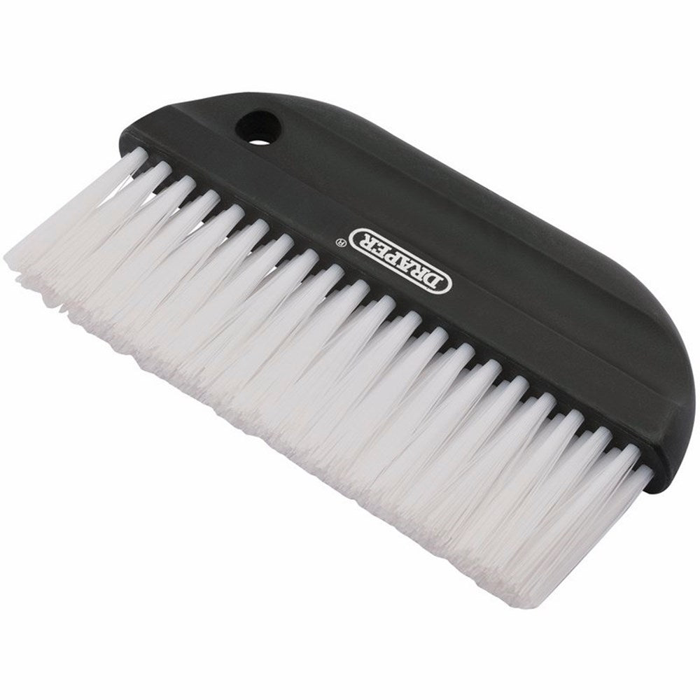 Paper hanging brush with grooved handle providing extra control in use. Attached with synthetic filaments for durability.