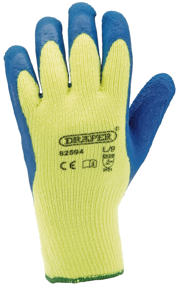 Seamless gloves with natural latex rubber coated palms and elasticated cuffs. Their good abrasion and tear resistance make them ideal for fabrication and assembly work.