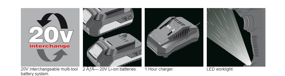 Features: Part of the Draper Storm Force 20V Power Interchange series, 3 functions; Drill, Screwdriver, Hammer, 13mm keyless chuck, Two speed gearbox with 22 torque control positions, Variable speed control with electronic brake, Battery level indicator, Spindle Lock, LED worklight, Supplied with 2x 2Ah batteries and a quick one hour charger. Draper Storm Force® 20V interchangeable battery system allows you to combine one battery with any of the tools within the 20V Storm Force series (not compatible with Draper Storm Force® 10.8V).