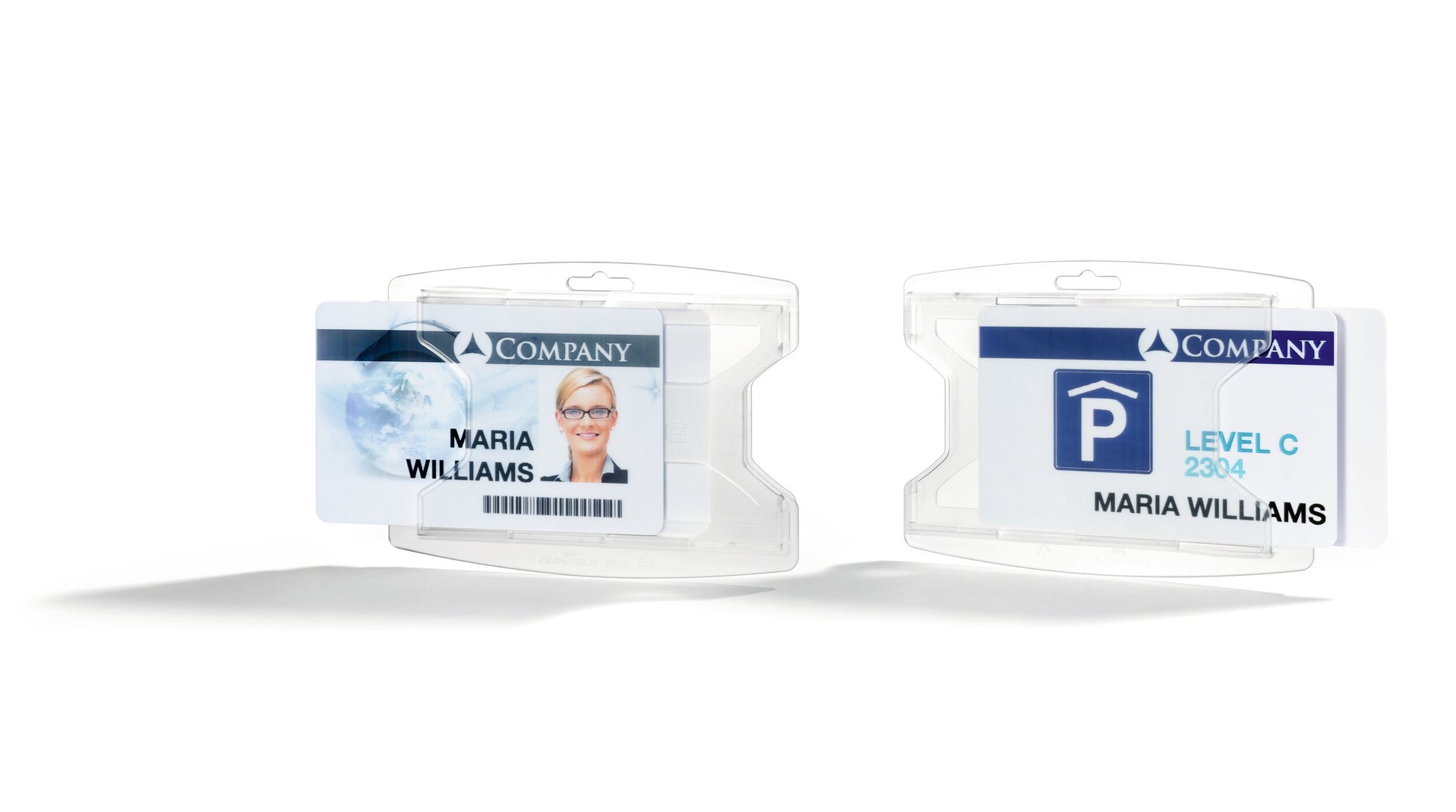 The side recess allows for effortless card removal, while the holder is compatible with chains, badge reels, or textile lanyards for versatile use. Made from durable, injection-moulded recycled polypropylene, the holder prevents breakage or splintering.