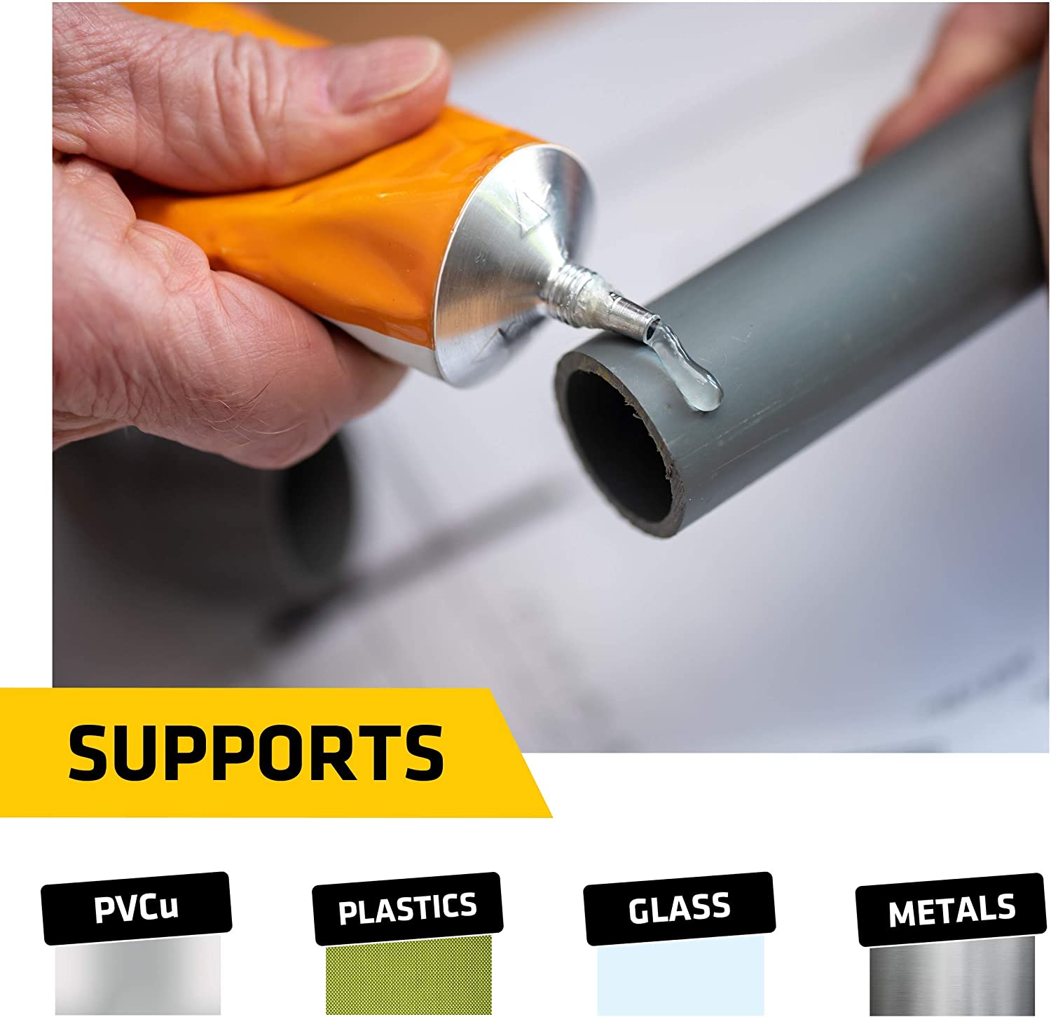 MULIPLE APPLICATIONS - Perfect for use on non-porous surfaces like metals, PVCu, glass and most plastics. Will also bond porous surfaces like wood but for these types of applications we recommend either D4 wood adhesive for wood or high viscosity super glue