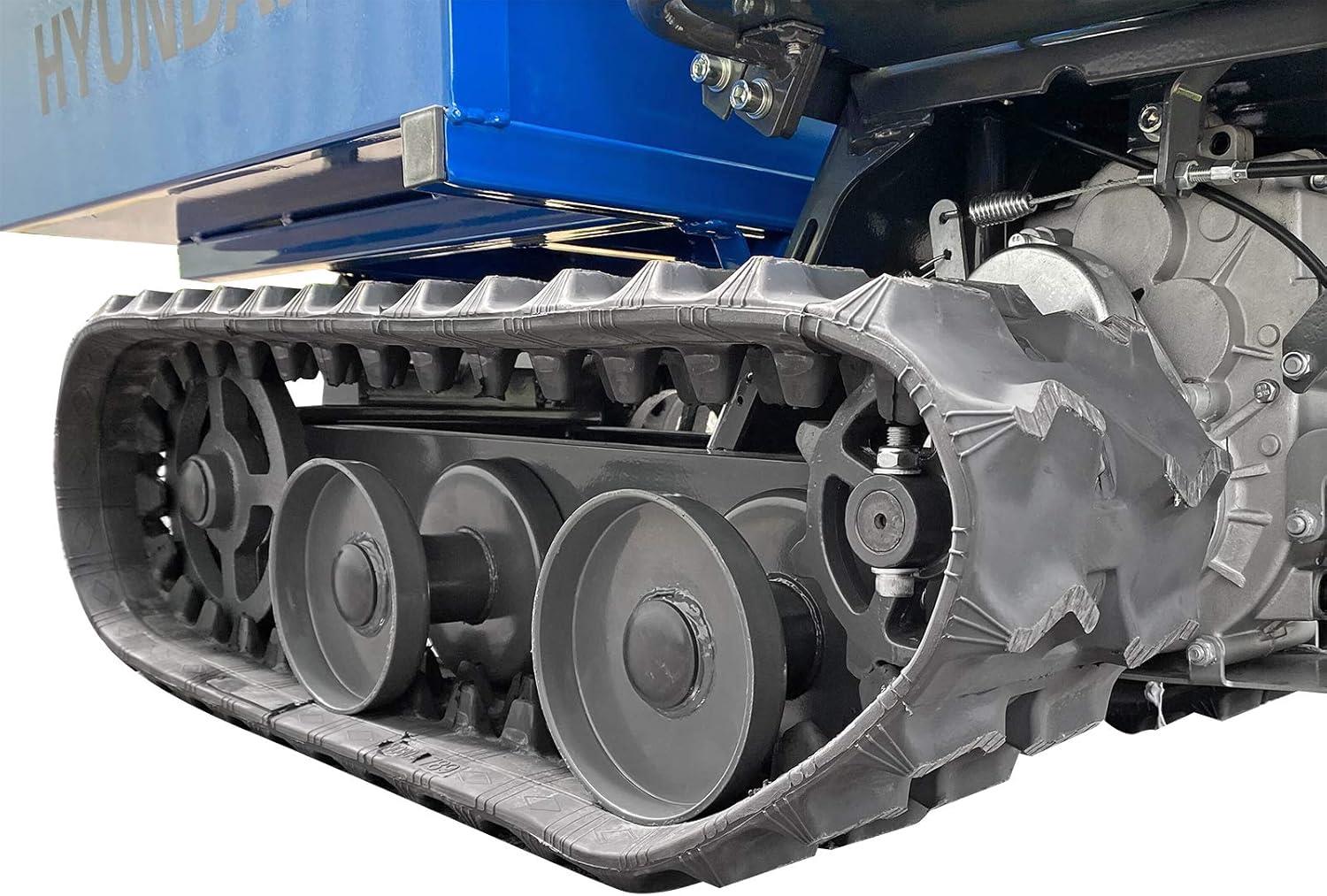 The Hyundai HYTD300 Tracked Mini Dumper is a powerful petrol-driven power barrow designed to transport heavy loads across rough, uneven and difficult terrain. Fitted with a reliable 196cc engine and heavy-duty rubber tracks, it offers excellent traction, stability and control, even on slopes or soft ground.