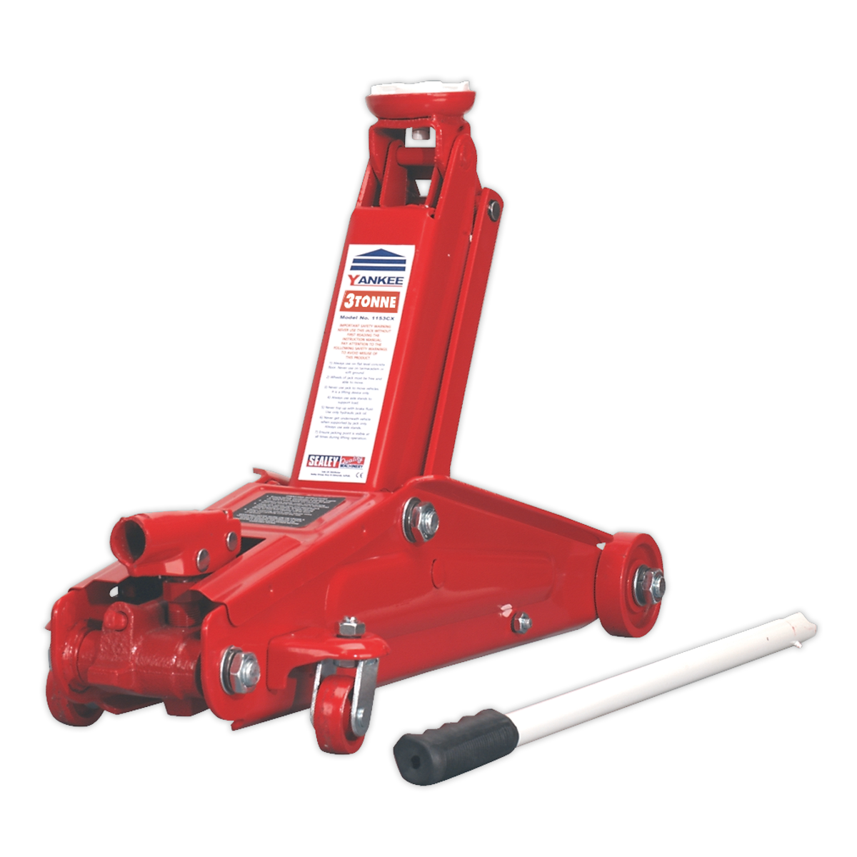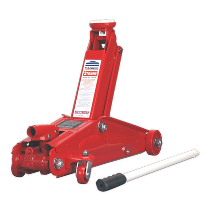 • Long chassis, high capacity, portable garage jack for serious hobby or recovery vehicle use. • Tough pump bracket and heavy-duty one-piece hydraulic unit with safety overload valve. • Supplied with one-piece pumping handle with rubber grip.