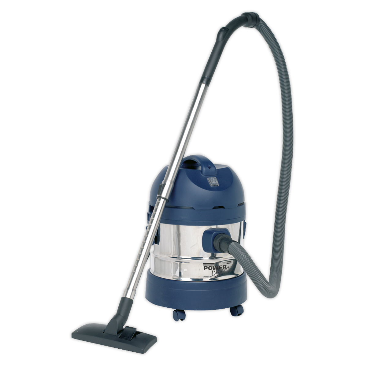 • High powered, lightweight industrial unit with blower facility. • Constructed from stainless steel, the drum unit is mounted on two castor and two fixed wheels. • Tool storage points on head and base. • Supplied with 4m cable and 110V plug, deluxe tool kit, including stainless steel telescopic rigid extension tubes, cartridge filter and wet-use foam filter.
