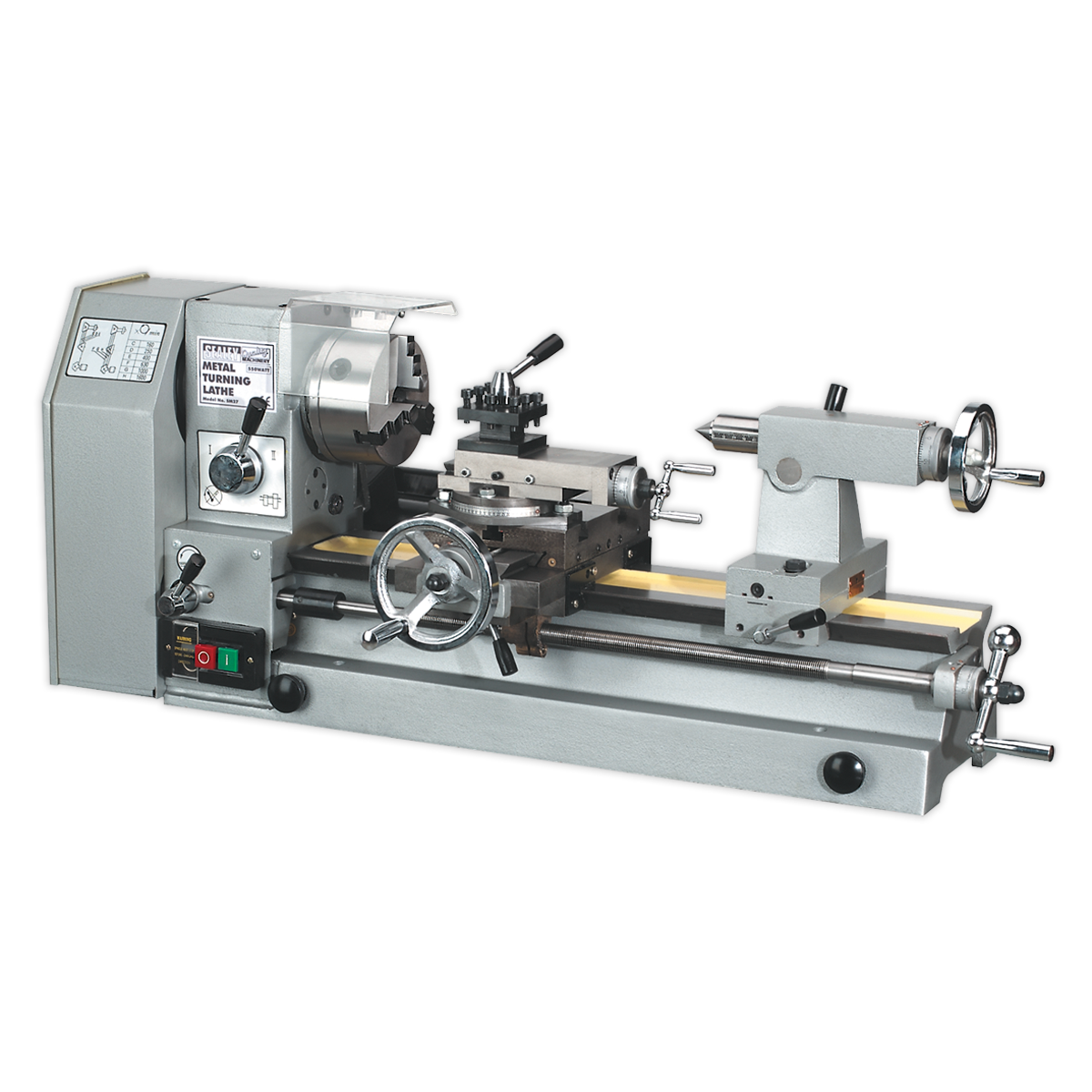 • Quality workshop lathe suitable for a wide range of turning and drilling applications. • Features power feed for even surface finish and thread cutting. • 4-Way tool post mounted on compound slide mechanism enables fast interchange of cutting tools with accurate feed. • Powered by 550W motor through 6-speed gearbox. • Incorporates quiet running PTO gearbox with oil bath lubrication for power feed. • Supplied with 3-jaw chuck and dead centre. • Fitted with no-load voltage release switch. • Meets Supply of Machinery (Safety) Directives 1992 (and amendments). • Workshop stand available as an optional extra, order Model No. SM27ST. • This item is heavy. Extra assistance must be provided at the delivery point to help its safe delivery.