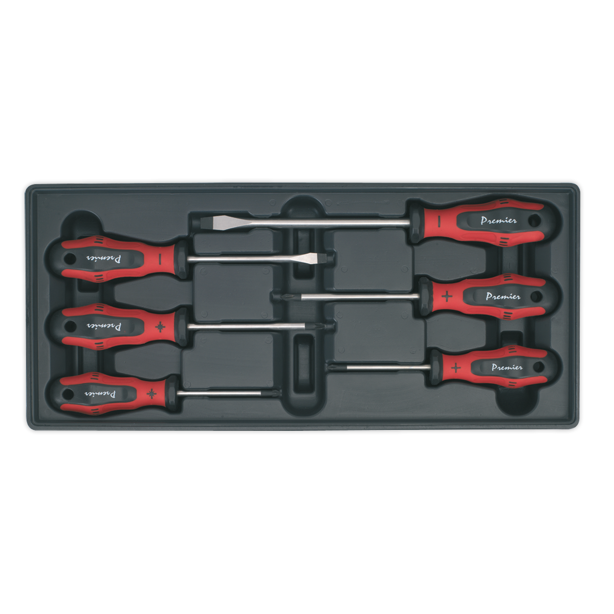 • Comprehensive and exciting range of Premier Line tool trays. • Designed to fit the AP24 Topchest, Rollcab and Workstation range and a selection from our Superline PRO® range, these trays are available in over 30 different configurations. • The tools have been carefully selected for the professional technician from our Premier Line range. • Design your own tool kit by purchasing the trays separately, or take advantage of our specially selected combination deals. • Lifetime guarantee*. • Tool Tray with 6pc Screwdriver Set. • Suitable for AP24 Series and selected Superline PRO® tool chests.