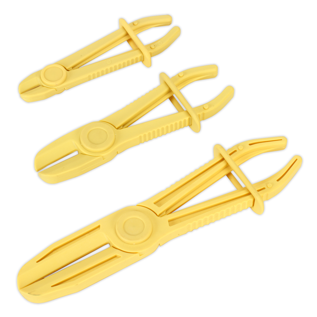 • Manufactured from heat resistant nylon. • Rounded jaw edges prevent damage to internal hose reinforcement. • Features locking mechanism for simple one-handed use. • Suitable for brake, coolant, fuel and vacuum hoses.