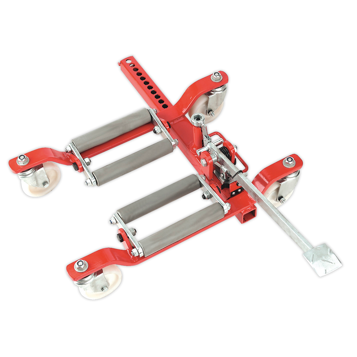 • Steel chassis with pedal operated mechanical lifting action. • Skate sits on easy-rolling Ø100mm nylon castor wheels. • Composite rollers cradle vehicle’s tyre and are capable of handling up to 240mm profiles. • Suitable for bodyshops, garages, showrooms or anywhere an immobile vehicle needs moving on an even surface. • Note: Skates sold as singles, but must be used in pairs.