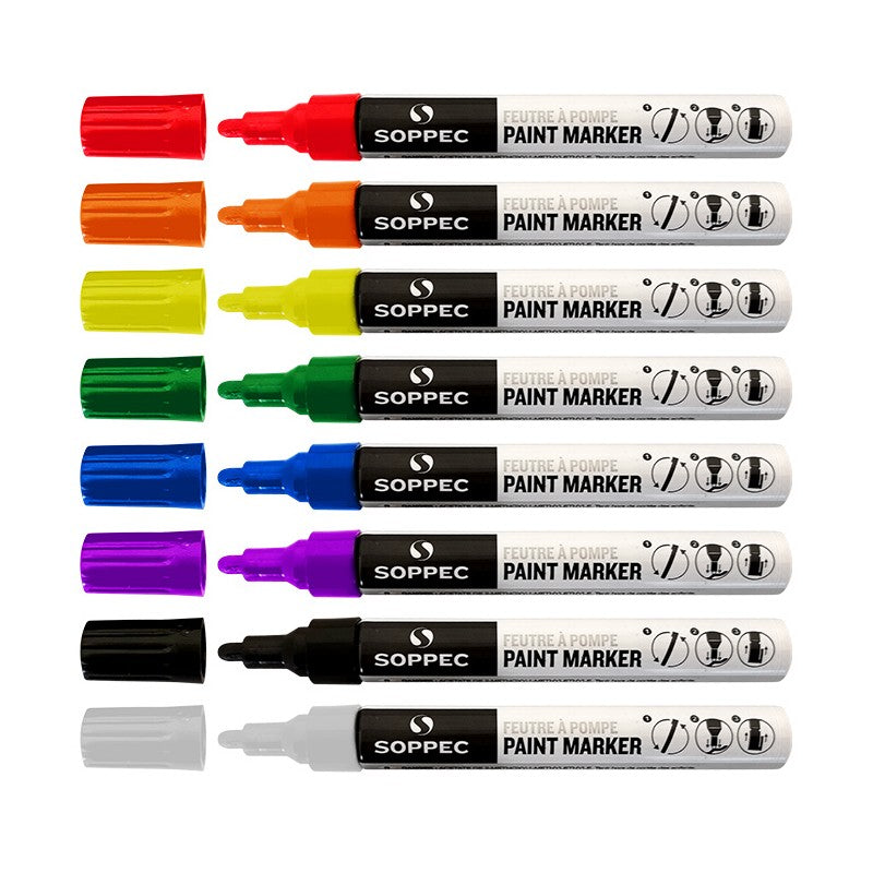 Paint valve pens markers can be used for a lot of uses: Identification of machined and drop-forged parts, stencil painting, etc. The paint contained is high coverage and it is possible to write on all types of dark surfaces.