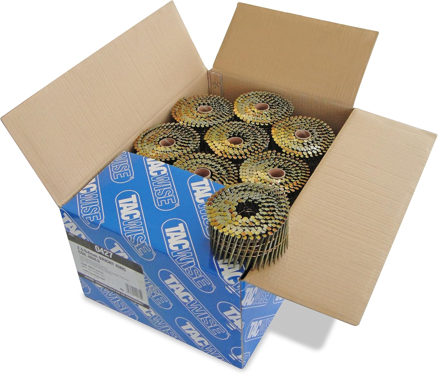 Tacwise 0427 Bright Flat Top Coil Nails Type 2.5 x 64 mm, Diamond Point, Ring Shank, 16° Inclined, Wire Collated, Pack of 9000