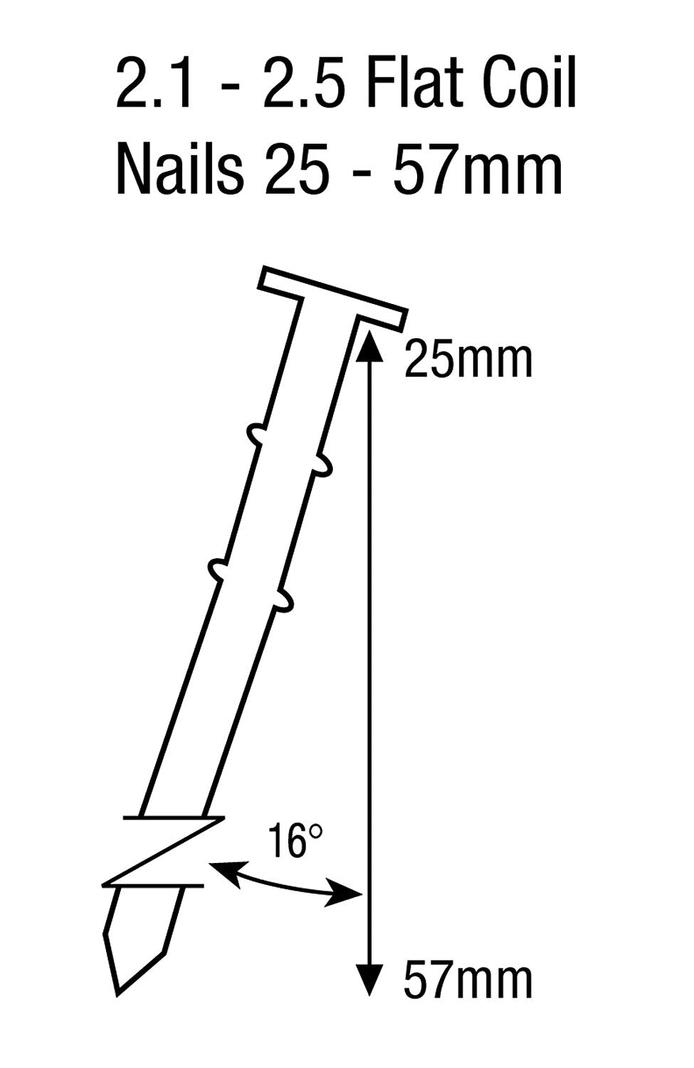 - PROFESSIONAL 2-IN-1 COIL NAIL GUN - Heavy-duty flat-top and conical top coil nailer supplied in a durable carry case, designed for speed, reliability and continuous nailing in a variety of industrial and construction applications