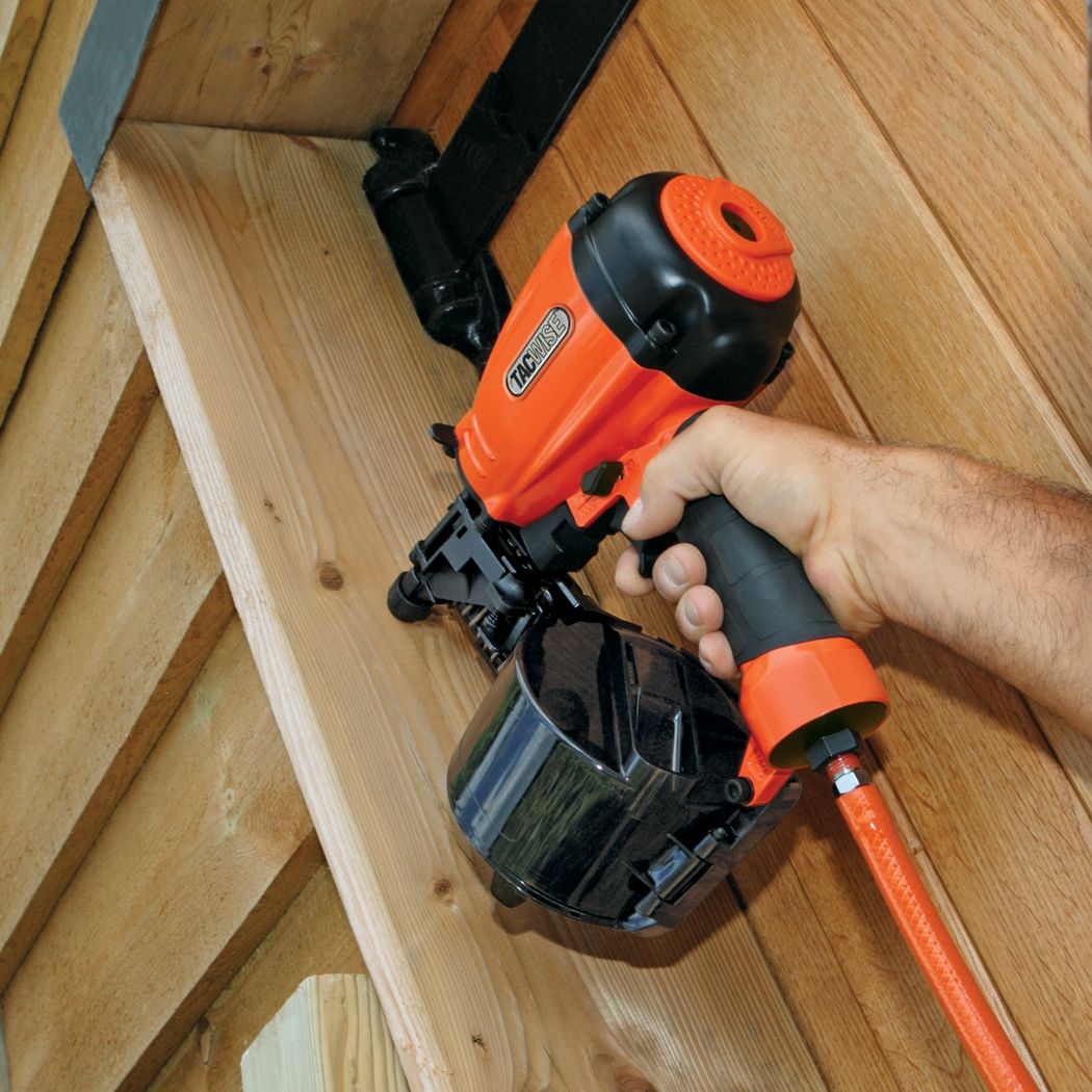 - VARIETY OF APPLICATIONS - Professional coil nail gun for a range of industrial applications including pallet, case and crate manufacturing, roofing, decking, fencing, timber framing, cladding, and siding as well as the construction of sheds and garden buildings