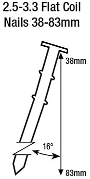 - COMPATIBILITY - Efficient high-capacity, quick-release magazine, enables firing of up to 300 x 2.5-3.3mm diameter 38-83mm flat top coil nails without reloading; we strongly recommend using Tacwise nails for a smooth, uninterrupted performance