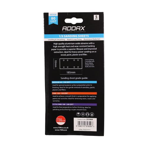 High quality aluminium oxide abrasive with a high strength heat and wear resistant backing paper to provide a superior lifespan and improved extraction. Ideal for heavy power sanding on wood, paint, varnish, plaster and filler. Punched 1/3 Sand Sheet P80